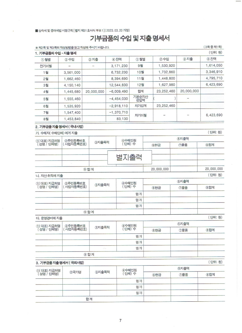 2025년 결산공시 기부금 모금액 및 활용실적 명세서